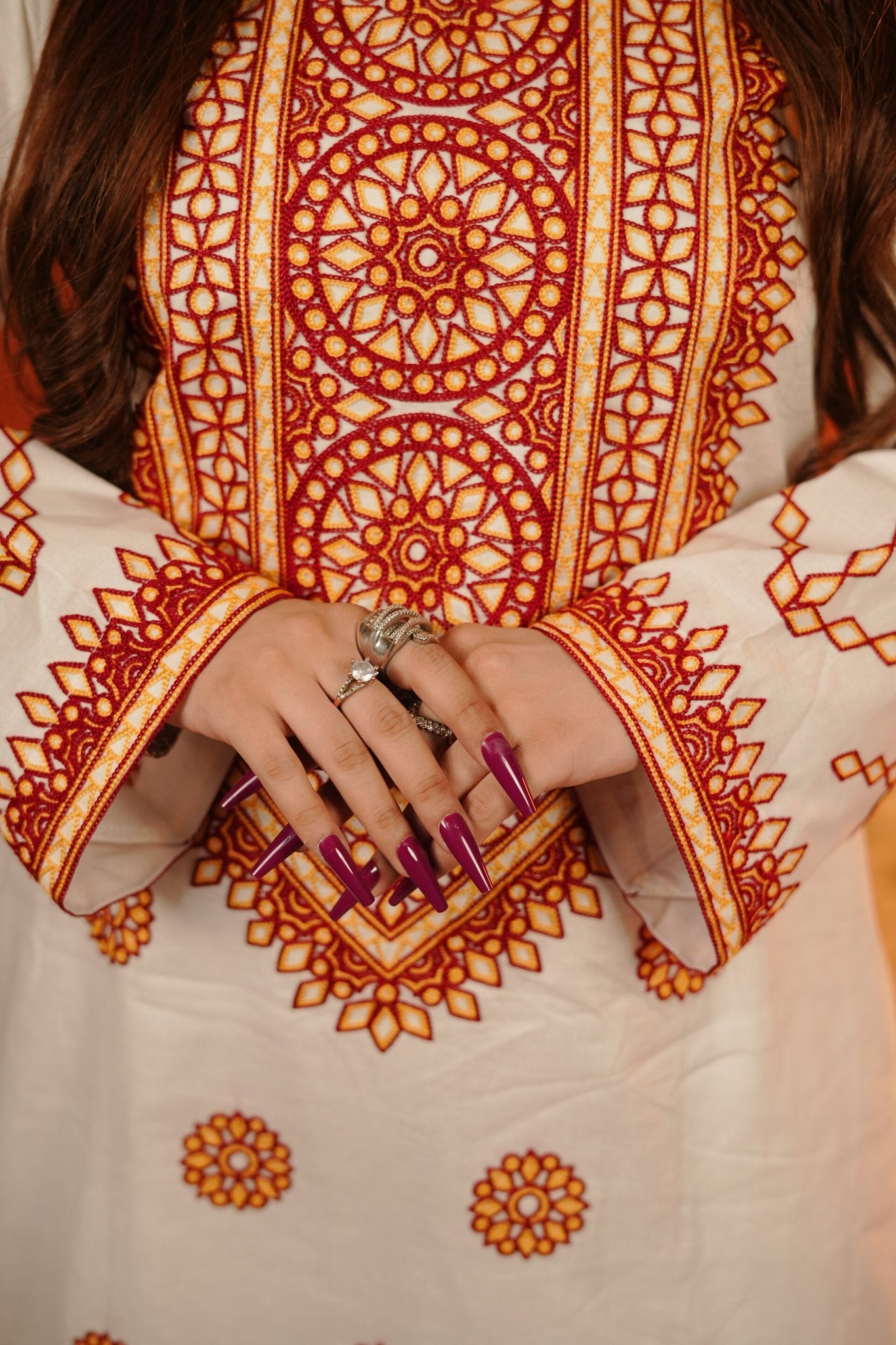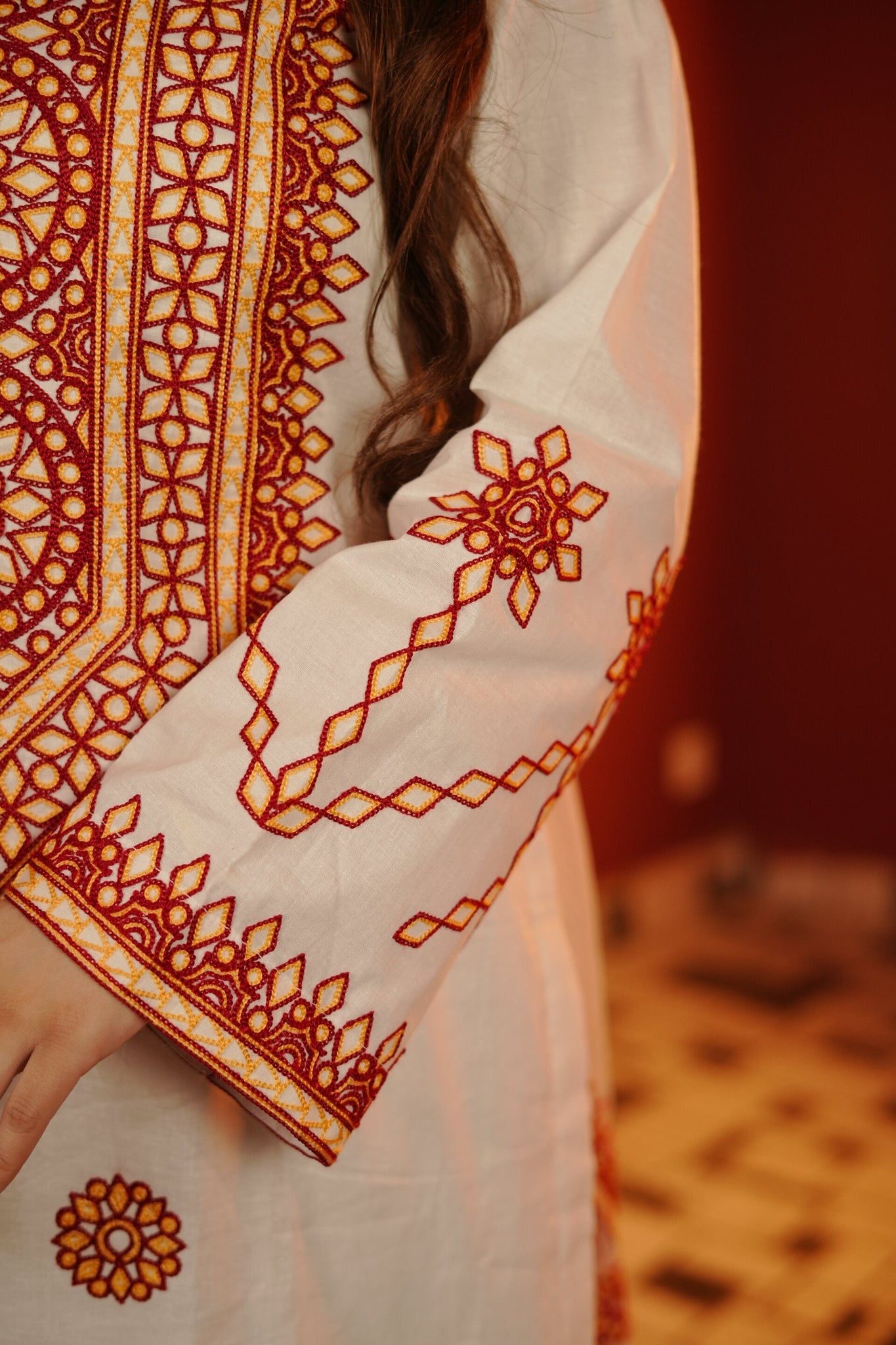 Hand wash recommended to preserve embroidery